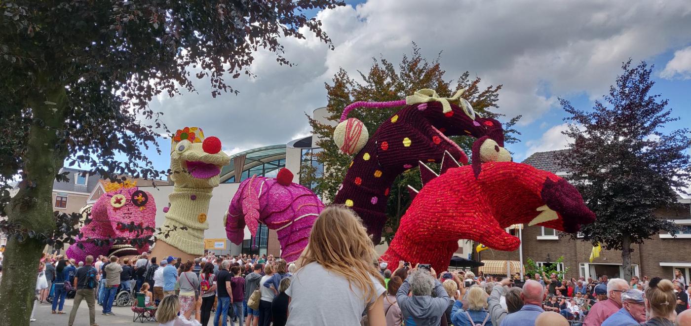 Today, we traveled to a small town near the Belgian border for what is billed as the largest flower parade in the world (I’m not sure how they came to that conclusion as I’m still pretty sure the Rose Parade is bigger). None the less, this parade was pretty well done with lots of floats made mostly from dahlias that are grown in the area of Zundert. Much like the Rose Parade, these floats are huge and elaborate with moving parts, sound, and special effects. Unlike the Rose Parade, some of these floats are dark and bizarre-think The Grim Reaper, demonic, creepy figures and one float that seemed to be depicting an indigenous spirit type religion.