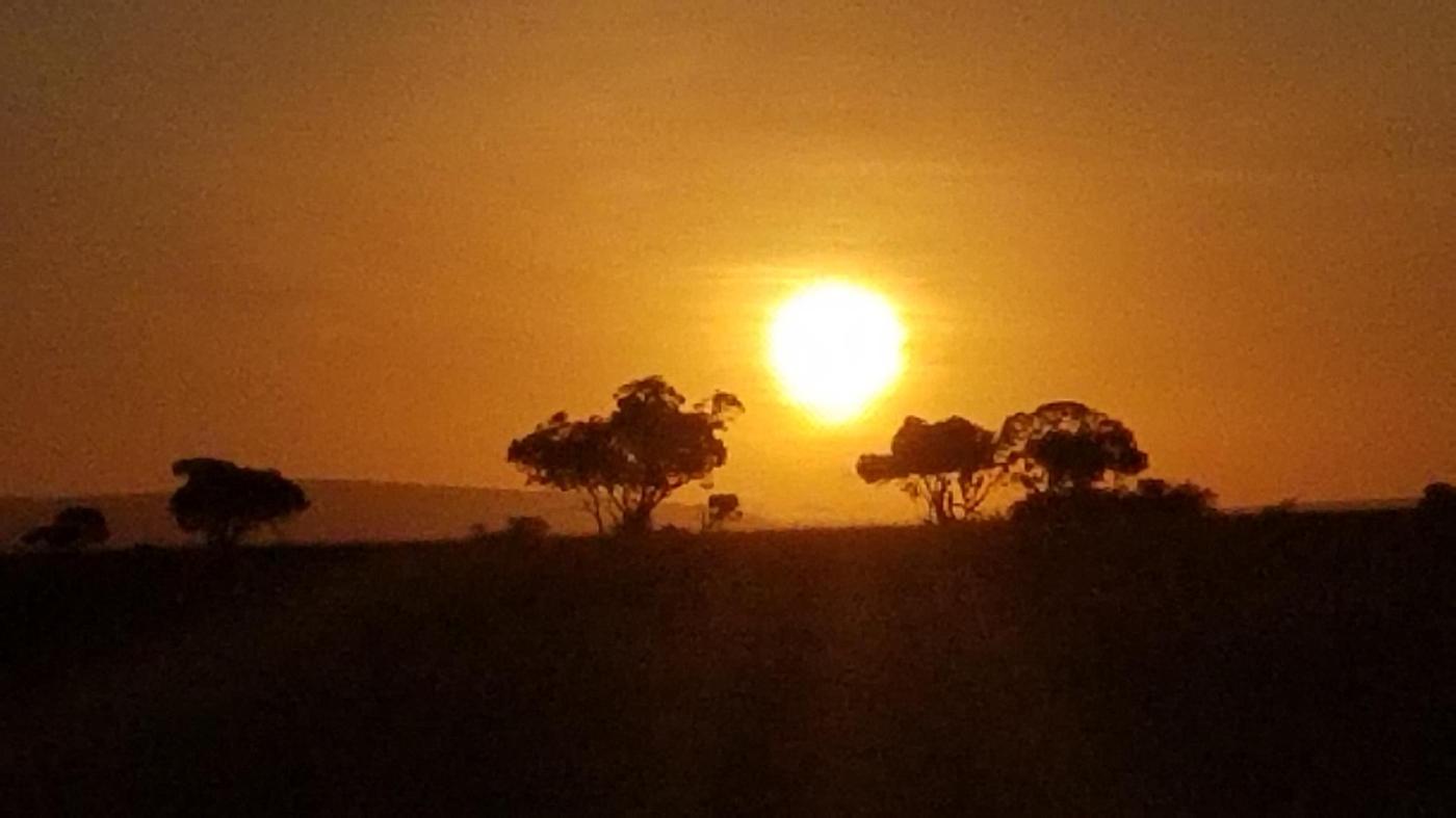 Our third excursion was a hot air balloon ride over the Mara. I’ve been wanting to do this for some time, so we were pretty excited. We had to get up at 4am to drive to the location, be checked in and briefed, and to watch the balloons be inflated. The basket we were in held 16 people plus the driver. I’m not going to lie, we got a little nervous when they told us that on landing we might topple over and we had to buckle ourselves in, grab some handles, sit all the way back and keep our “neck strong.” Luckily, the conditions were favorable, and we stayed upright (they said it was the first upright landing in a month and an hour later, the conditions were back to unfavorable). The views from the balloon were awesome, and it was fun to see the area from a different vantage point. We got to see several animals from the balloon including one we had not seen yet-a serval cat. I think we interrupted it hunting because, as we came over, it looked up and a few feet away a hare ran off. After the hour-long balloon ride, we were driven to a location for a bush breakfast. The location was apparently the area where they filmed scenes from the film “Out of Africa”. They greeted us at the breakfast with champagne and orange juice, and the breakfast itself was huge and very good.