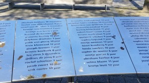 Our final stop of the day was Loods 24. This site which is closer to the river was the location from which the Jewish citizens of Rotterdam were loaded onto trains to be sent to concentration camps. Children as young as 3 months were shipped out. The names and ages of the known children can be found engraved on this monument.